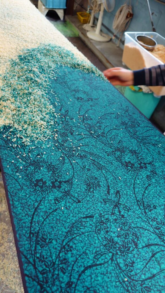 (上記三氏の彫刻型を使用した伊勢型小紋)