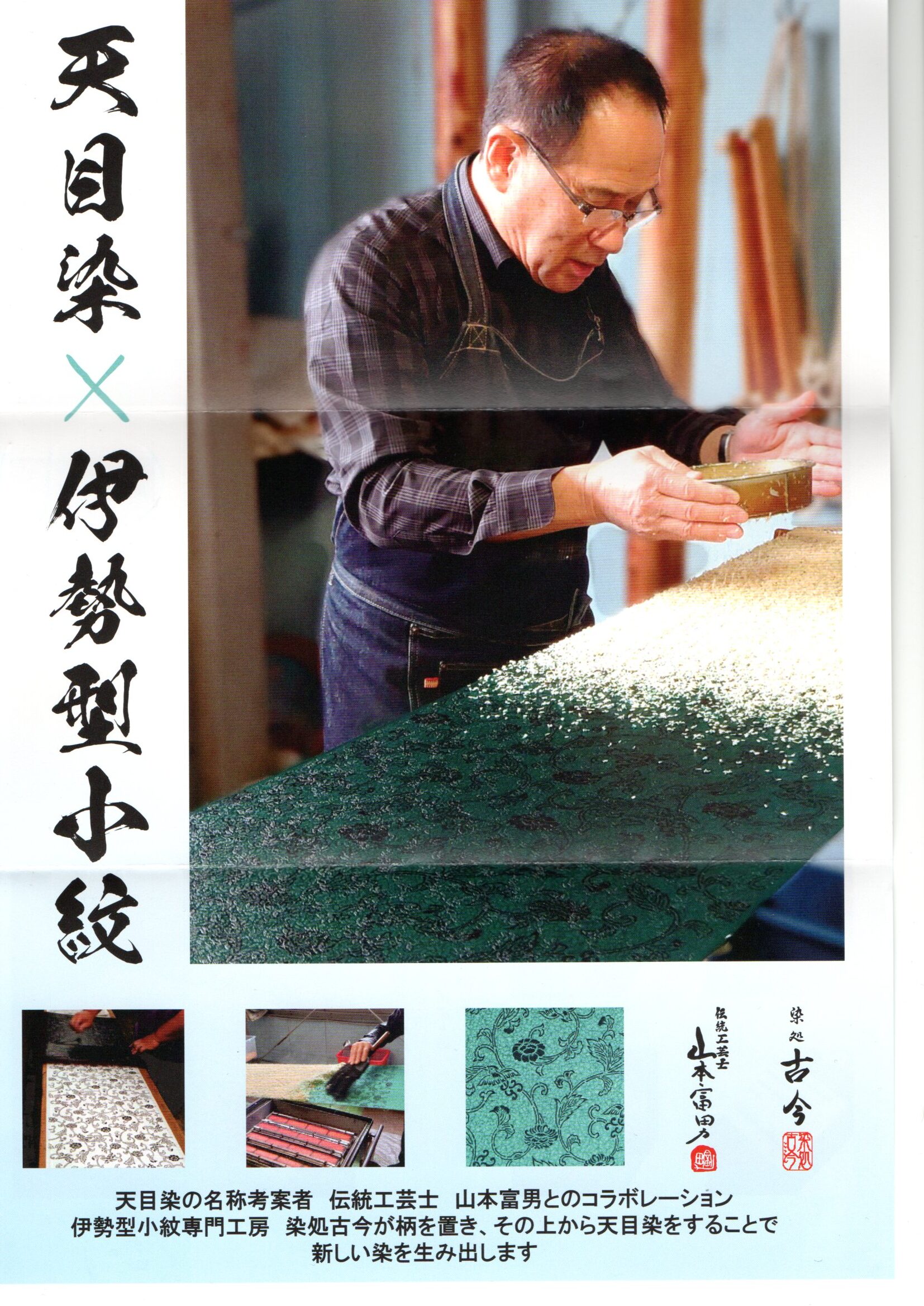 天目染 + 伊勢型小紋 (伝統工芸士 山本富男)