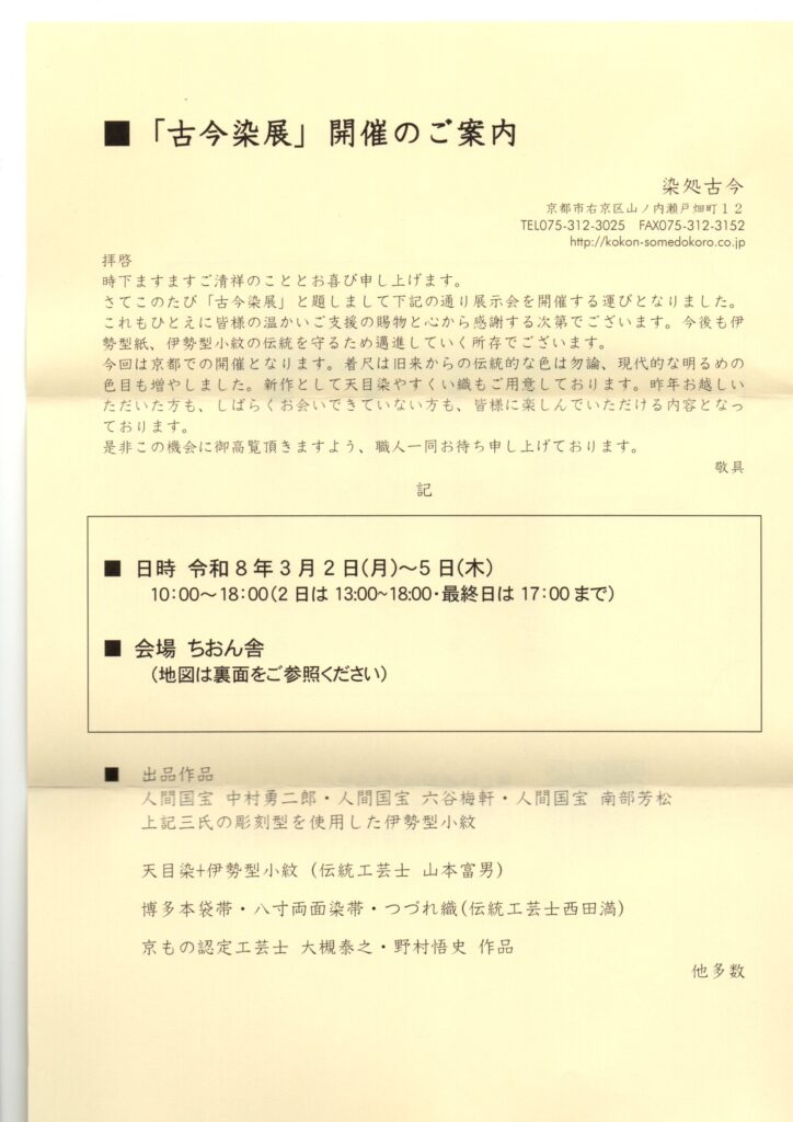 今回は「古今染展」のご案内をお届けします。