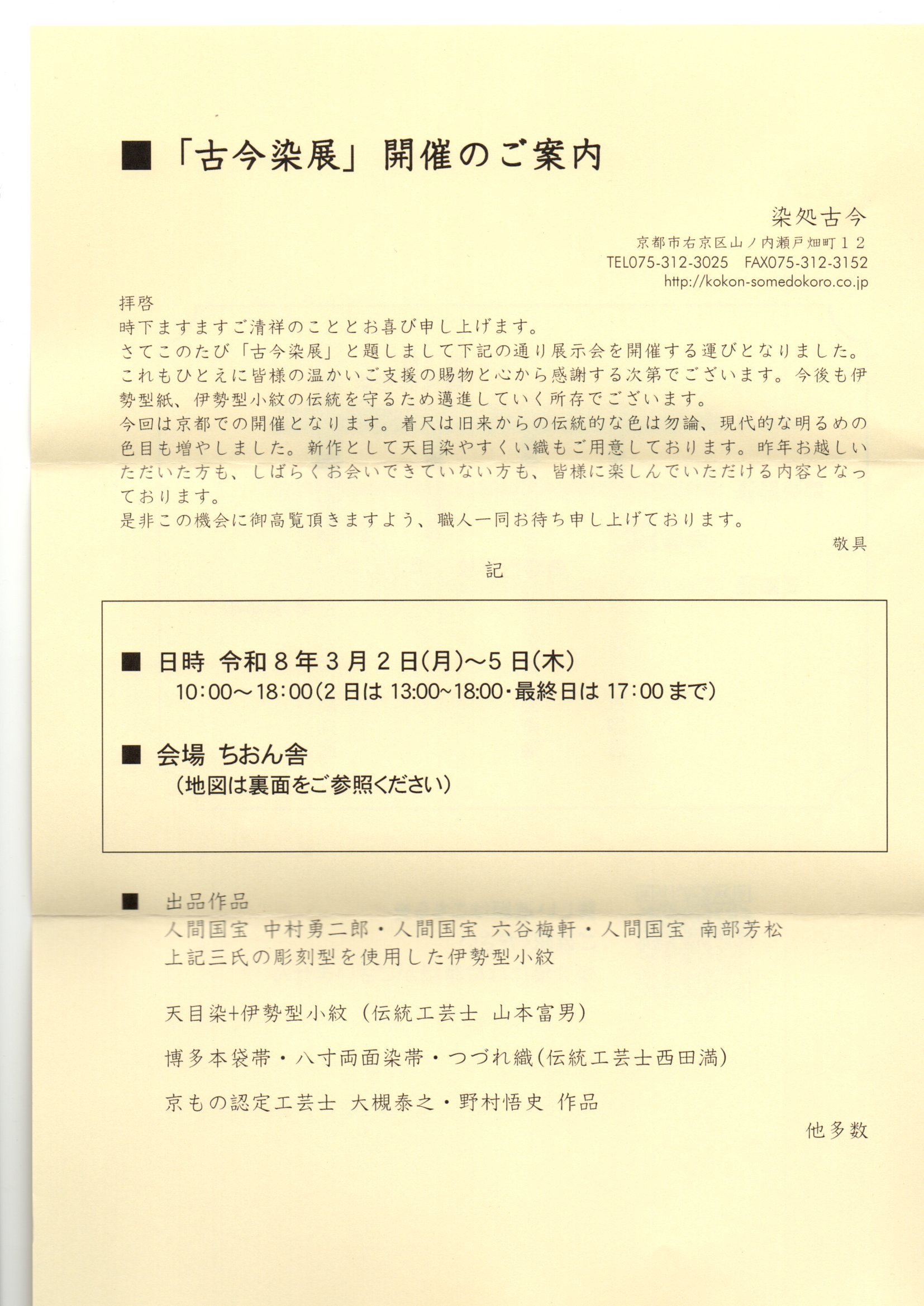 さてこの度「古今染展」と題しまして、下記のとうり展示会を開催する